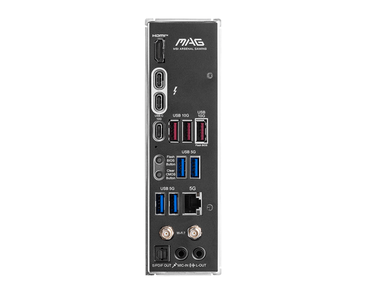 وای فای نسل 7 و درگاه اترنت 5 گیگابیتی برای ارتباط شبکه، USB های تایپ A و تایپ C با سرعت 5 و 10 گیگابیت به تعداد بالا، 4 پورت ساتا، تاندربولت 4، جک میکروفون و هدفون، درگاه صوتی اپتیکال و خروجی HDMI، همه ی اون چیزیه که کاربر نیمه حرفه ای رو به بالا نیاز داره.
