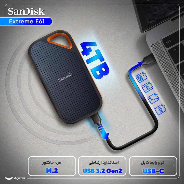 • نوع رابط: USB 3.2 Gen 2 Type-C (سازگار با USB 3.0 و USB 2.0)